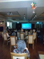 居室で実施されている方もいらっしゃいますが1階では機能訓練指導員と清掃さんと一緒におこなっています。1階のご入居者様は「毎日、やっていたら身体が軽くなったような感じ」と仰ってました。まさに「継続は力なり」ですね。