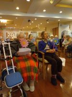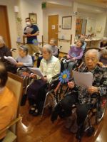 コロナ前は何回か来てくださいましたがコロナで外部の方達との距離ができ、約5年ぶりの再開となりました。学生時代から仲間の方々とバンドを組んで活動していらっしゃいます。ご両親は他界されましたが此処へ来ると色々な思い出が蘇ってくるようです。最初は演奏と共に皆で唄い、途中オリジナル曲の母を想う歌ではT様も皆様も胸が熱くなったようです。その後も皆で唄い、皆様が楽しまれているのに喜んでくださり、大盛況でした(^^♪
