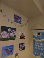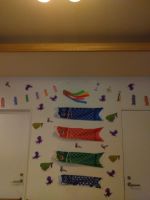 営繕さんが、大空を🎏泳いでいるように高い場所にも飾ってくれました。入浴に行かれる方が「鯉のぼりの時期なのね、昔は兜とか、飾ったのよ」と懐かしんでいました。