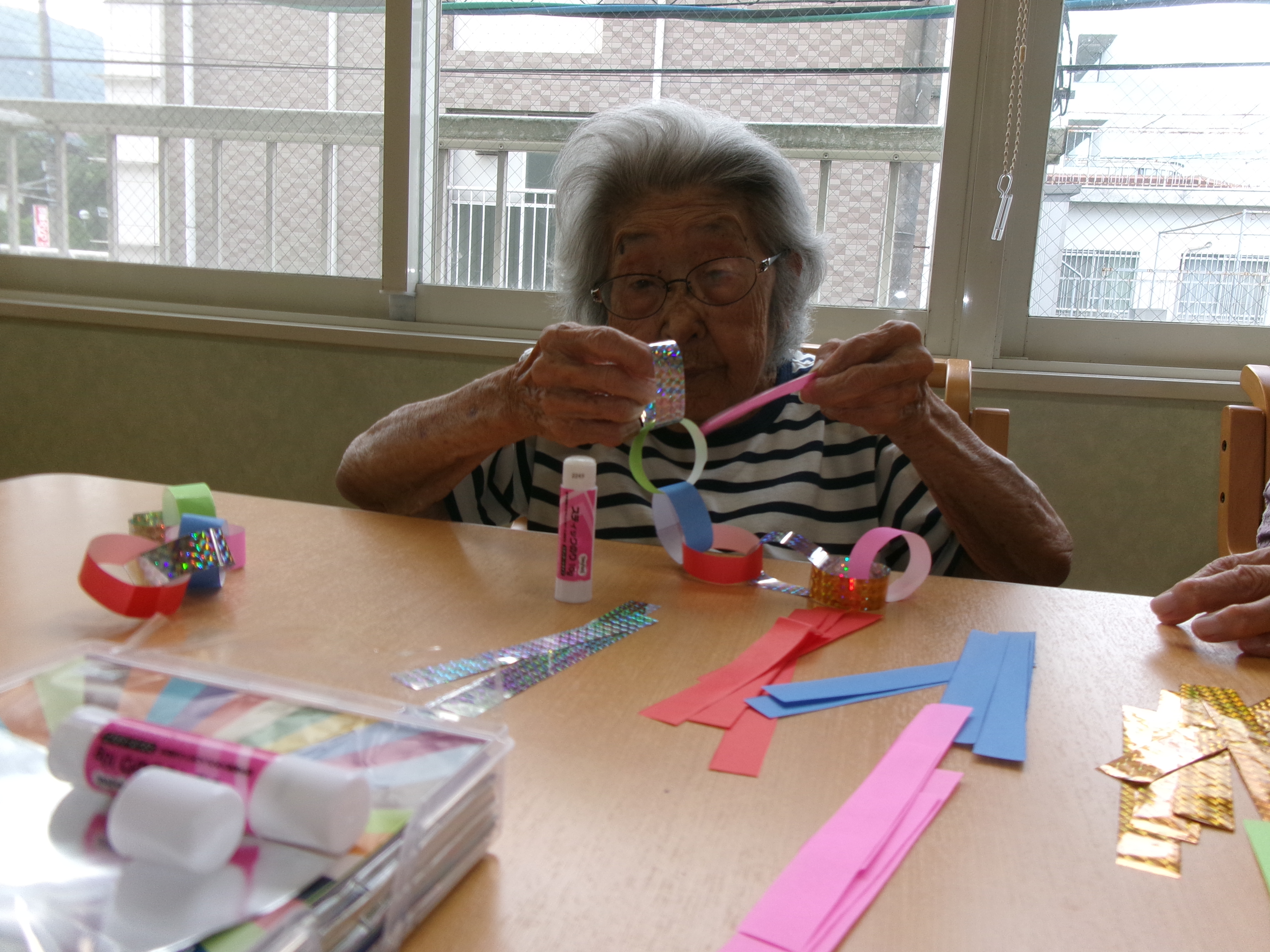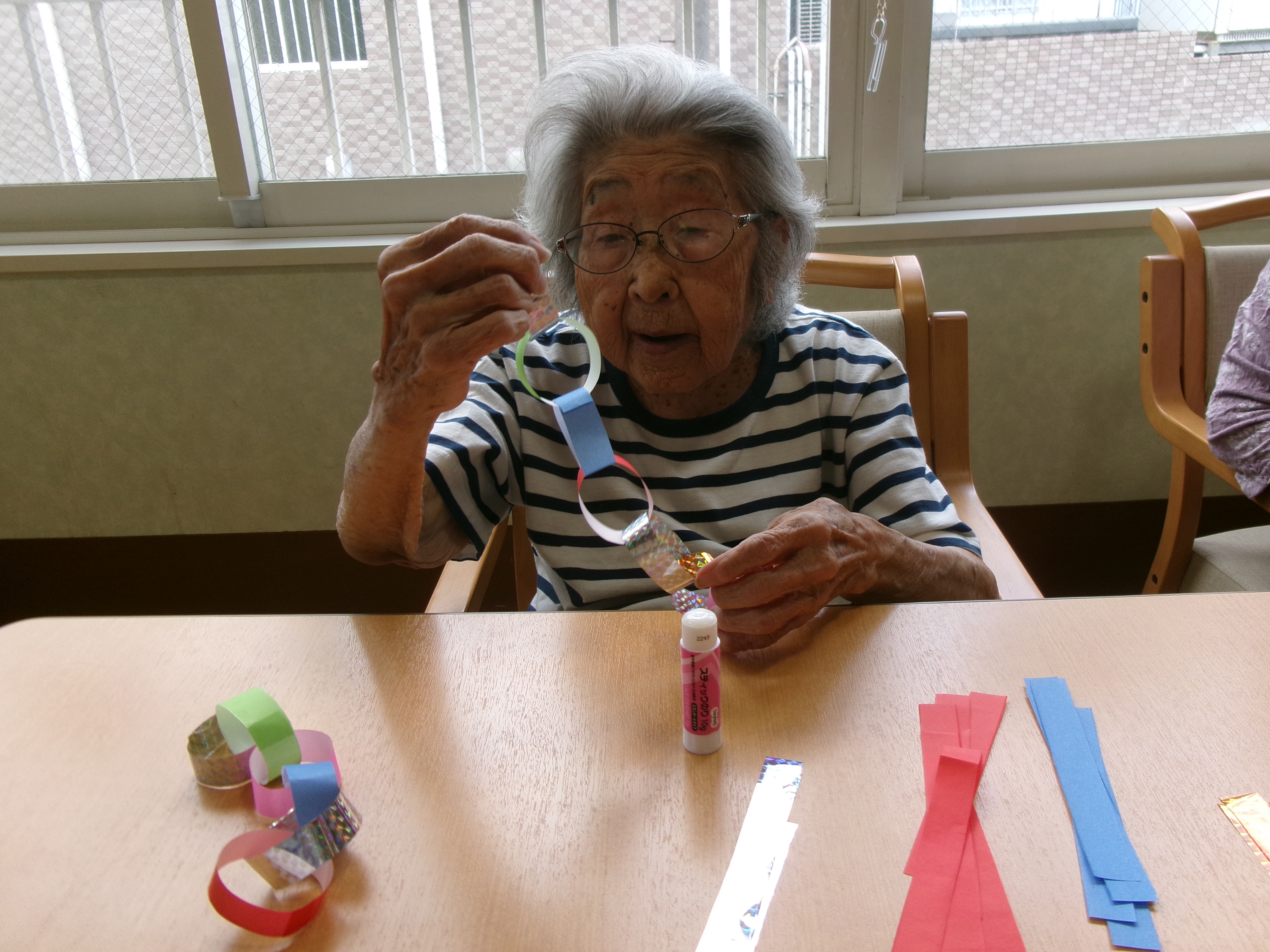7月7日の「七夕」へ向けて、折り紙で飾り付け作りに挑戦なさいました。