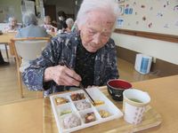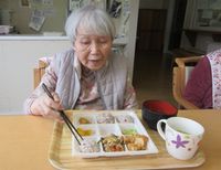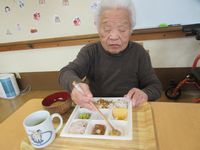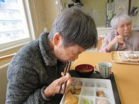 22日の昼食(お弁当)の様子♪ グループホーム3Fの皆様もいつもと違うメニューにカメラを気にする事なく(^^;) もくもくと食べておられました♪