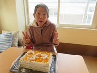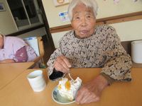 1日はお誕生日会でした♬ 平均年齢を下げておられる(^^)ヤングレディ♪ そして平均年齢を上げておられる(^^)大正生まれの方々♪もお祝いの拍手と共に手作りケーキをご相伴に預かっておられました(^^♪