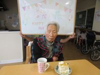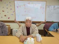 4日に2月のお誕生日会を行いました♪ 大正・昭和のお生まれのお二人の生誕をお祝いしました♪ 手作りケーキの感想をお伺いすると「美味しい!」とほめて下さいました(^^♪ お二人ともずっと長生きして下さいね!(^^)! めざすぞ!100歳!