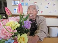 8日 息子様からお誕生日のお祝いのお花が届きました♪ 8日で御年…レディの年齢は秘密❤…(^^;)バレバレか…いつも笑顔を沢山見せて下さりますが、いつもにまして素敵&豪快な笑顔を見せてくださいました♬ いつまでも長生きして下さいね(^^♪
