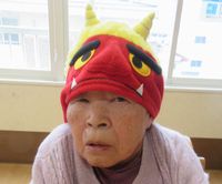 鬼がやってきました!! 皆でとりゃっ!と退治するかと思いきや、とっても可愛らしい鬼といっしょにピース(^^)v や金棒を持ってぎゅーとする方までいらっしゃいました♪お昼ご飯は恵方巻を美味しく頂き可愛い鬼に変身した方もいらっしゃり節分を満喫して頂きました(^^♪