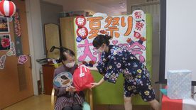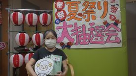 まず最初に絵柄入り団扇を利用者様に配布して抽選会スタート!