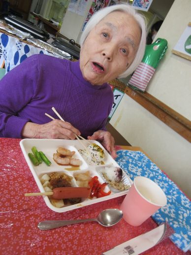 明日はカラオケ大会後のお楽しみ『鉄板焼き』、昼食の様子をお届け