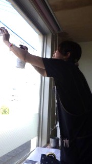 デイサービスフロアの窓拭きを