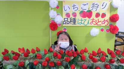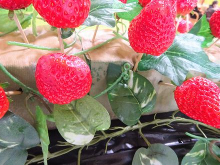 ついスタッフもイチゴ🍓に囲まれてピースサイン✌