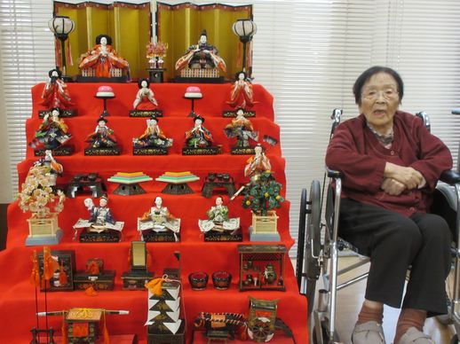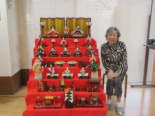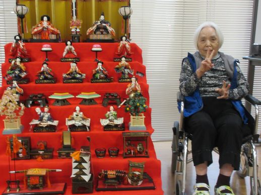 デイサービスの方に本物の見事なひな壇がありましたので、