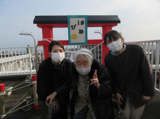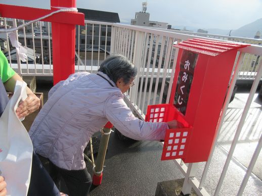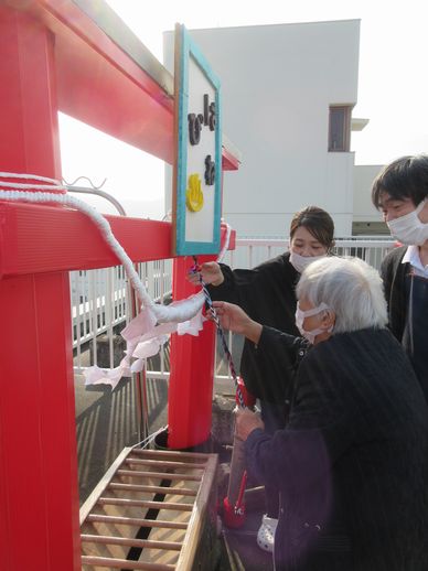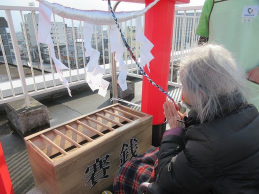 先日完成をお伝えした鳥居を屋上に設置し、利用者様を順にお連れしてお参りして頂きました!