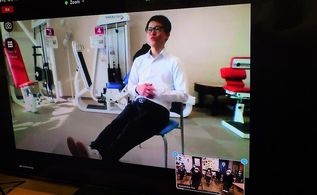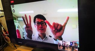 鹿児島にいるリハビリの先生とリモートで繋ぎ、楽しい体操を…