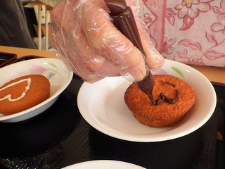利用者様にチョコペンで💓(ハート)を描いていただきましたが、