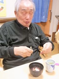 今回、ある男性利用者様に、ぜんざいを振る舞った時に密着❕