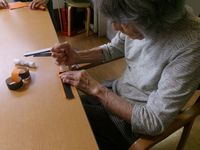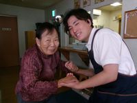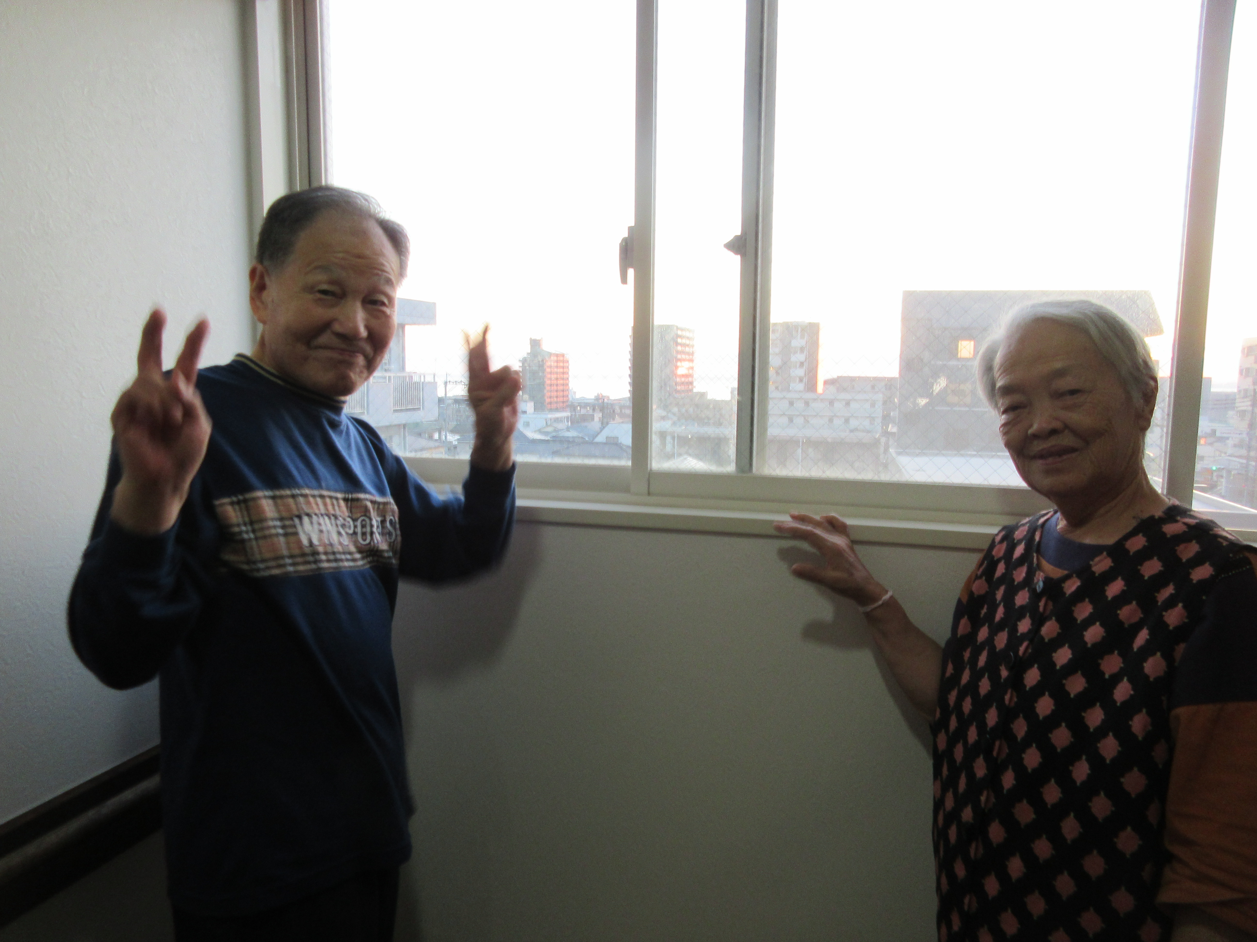 毎月皆様の体重測定をしております♪ 車椅子に乗ったまま測れる体重計に普段は杖を使う方でも自力で立つことが出来る方は体重計の上まで安全にご案内するのですが、カメラを向けるとなぜかフォークダンスかのように仲睦まじい二人の姿をとらえてしまいました(^^♪