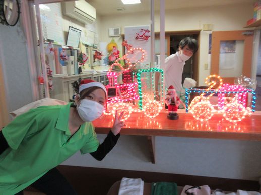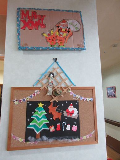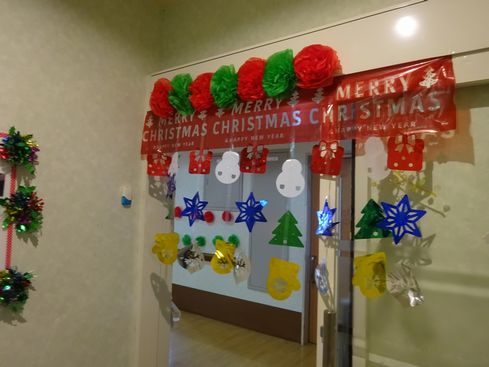 また壁の空きスペースや通用口にも手作りの物や市販の物を用いて、華やかなクリスマスを演出致しました!