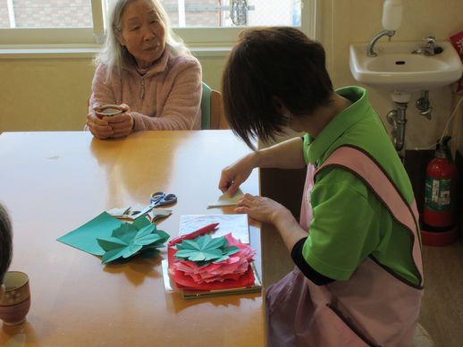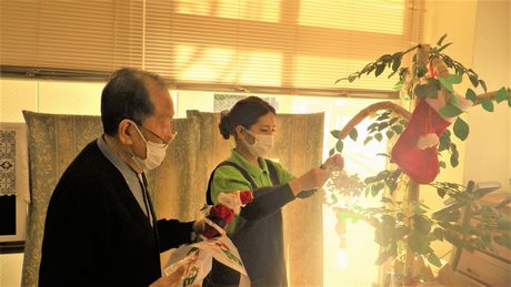 作成はスタッフと利用者様が楽しく、クリスマスの思い出話をしながら