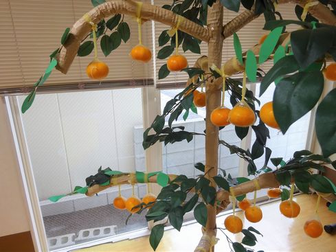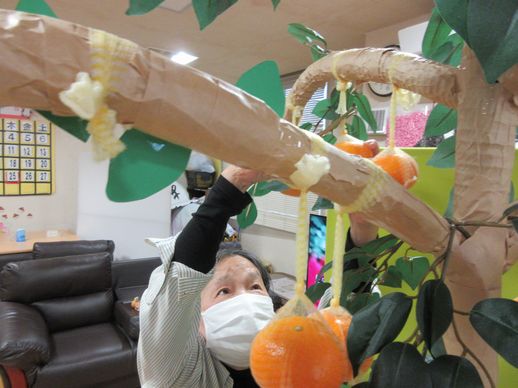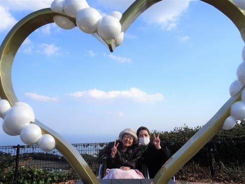 ハートのオブジェがあり、入居者様と職員は記念撮影を行いました。
