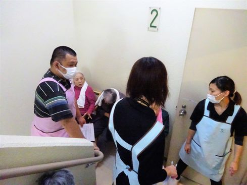 今回はデイサービス・グループホーム合同での火災による避難訓練。