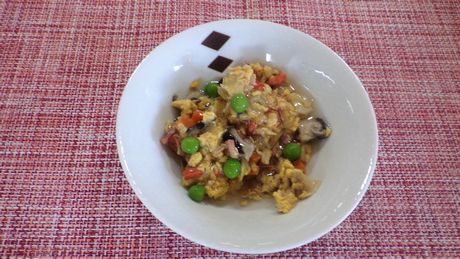 沢山の具材を卵でとじ、甘酢餡をかけた一品です。