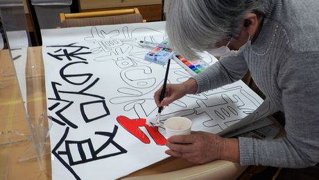 今日は、利用者様が手伝ってくださり看板の色塗りをしていただきました。