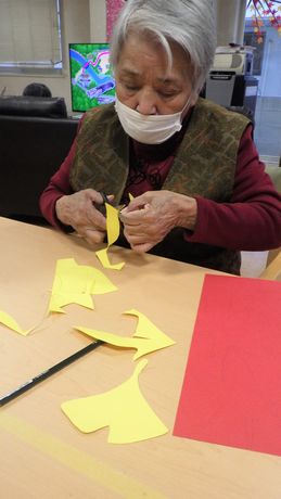 グループホームの壁飾りには見事な紅葉が出来上がりました!