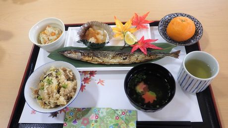 きのこご飯、さんまで秋の味覚が堪能できるお食事でした。