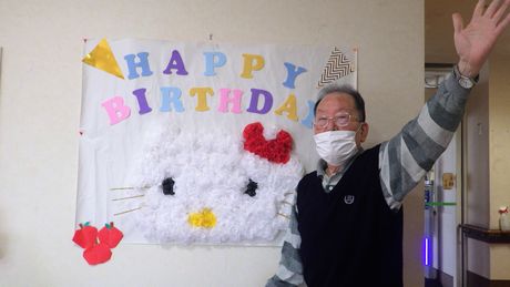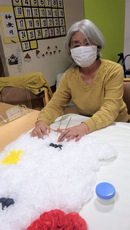利用者様も一緒にお手伝いをしていただき、はな紙でキティちゃんを描きました。