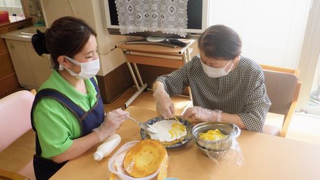 今日は利用者様と一緒に🍰ケーキを作りました。