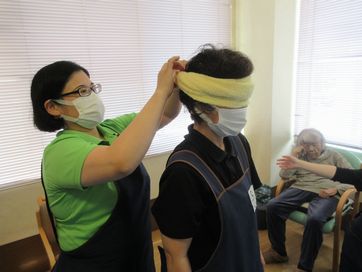 スタッフは全員目隠しをしてチャレンジしてもらいました!