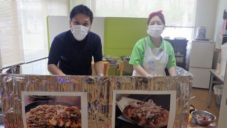 STAFFが頑張って焼いた、手作りのお好み焼き、たこ焼きです。