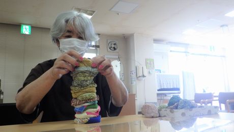 急にお手玉積みをしたくなり、利用者様と競争しました。