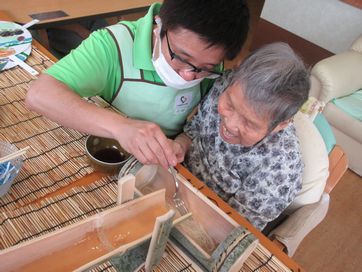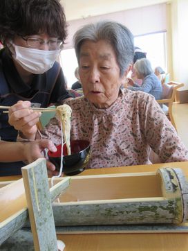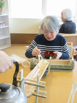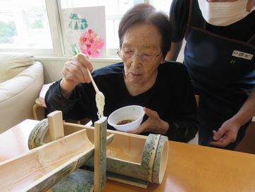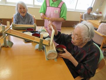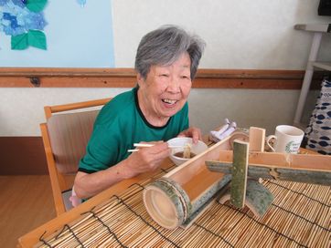 昨日に引き続き、3階での流しそうめんレクの様子です!