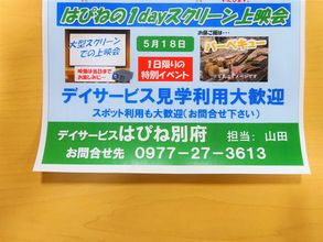 1日限りの大型スクリーンでの上映会にお昼ご飯は、はぴねBBQを行います。
