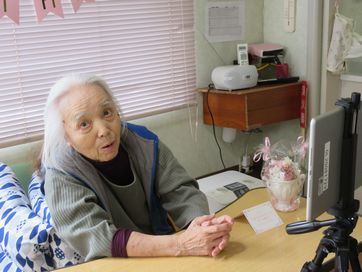 ご家族様も直接お会いしてお祝いの言葉をかけてあげたい所であるとは思いますが、現在は未だ面会を制限させて頂いている状態ですので、リモートでの面会となりました。