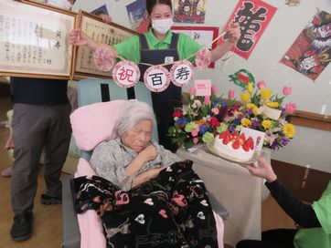 百歳のお誕生日を迎えられた利用者様がいらっしゃいました!