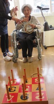 今回はグループホームでの「輪投げ」レクリエーションの様子をお届け致します。