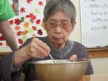 利用者の皆様には混ぜる作業をお手伝い頂きましたが、スタッフが誤って低脂肪乳を使用してしまい、冷やしても固まらず……。