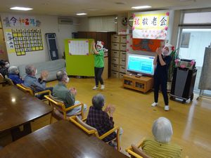 開会宣言から始まり、クイズ大会、職員によるダンスを鑑賞、ビンゴ大会、最後はカラオケを行いました。今年もDS敬老会は盛り上がりました。