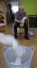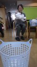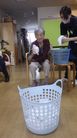 タオルを投げて少し離れた所にあるカゴにシュート!