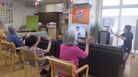 映像を見ながら行う体操の様子です。