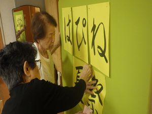 夏まつりPOPの貼り付けを利用者様がお手伝いしてくれました。