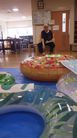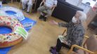 椅子に座った状態で行って頂き、椅子から遠い浮き輪ほど得点アップ!
