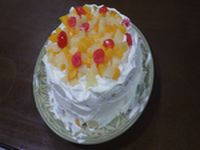 クリームを塗り、フルーツを飾り完成です。楽しく作ることができました。