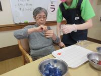 まずはデイサービスでもお伝えした「あじさい団子」です。