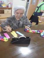 写真は笹飾りを作成している場面のみですが、この後は利用者様に短冊も書いて頂く予定です。