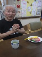 デイサービスではそんな紫陽花をイメージした『あじさい団子』を作り、皆様にお召し上がり頂きました。