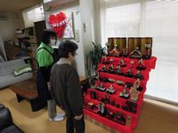 雛祭りの時期には、デイサービスのスペースを用いて立派な雛壇を展示致しました。利用者様達にも大変好評で、皆様「凄いなぁ」「昔を思い出すわ」と思い思いの感想を述べられていました。