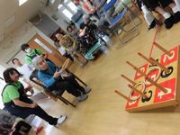運営懇談会の後に催した運動会では、水の入ったペットボトルをピンに見立てたボーリングをはじめ、輪投げ・玉入れ等、お馴染みの競技を取り揃えました。