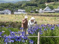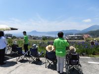 天候にも恵まれ少し暑いくらいでしたが、眼下に咲き並ぶ見頃の菖蒲を皆様目を細めて眺められていました。近くまで降りられる場所もあり、写真を撮りに向かわれる方もちらほら。「綺麗やな」と紫や白の花を観賞され、迫る梅雨の訪れを感じて頂けた事と思います。